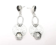 Hammered Disc Dangle Earring Set Base Wire Antique Silver Plated Brass Earring Base (62x24mm) (10mm blanks) G26652