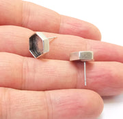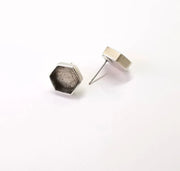 Hexagon Silver Earring Set Base Wire Antique Silver Plated Brass Earring Base (10mm blank) G26990