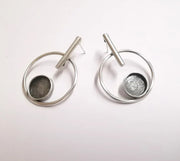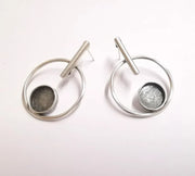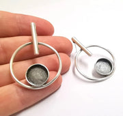 Hoop Rod Stick Round Silver Earring Set Base Wire Antique Silver Plated Brass Earring Base (12mm cabochon bezel) (43x31mm) G34199