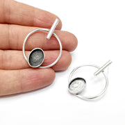 Hoop Rod Stick Round Silver Earring Set Base Wire Antique Silver Plated Brass Earring Base (40x30mm) (13x10mm blank) G34463