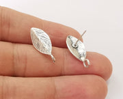 Leaf earring stud base Antique silver plated brass earring 1 pair (23x10mm) G25656