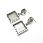 Square Round Dangle Earring Set Base Wire Antique Silver Plated Brass Earring Base (20- 10 mm blanks) G34442