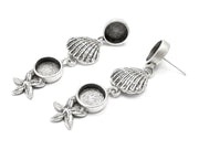 Starfish Scallop Sea Shell Earring Set Base Wire Antique Silver Plated Brass