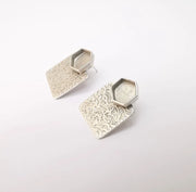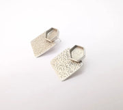 Earring Stud Base, Hammered Earring Blank, Ear Settings Resin Bezel, Cabochon Mounting, Antique Silver Plated Brass (10mm hexagon ) G35846