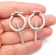 Silver Hoop Earrings, Antique Silver Plated Hoop Earring, Findings (48x24mm) G35755