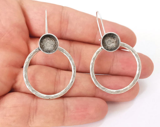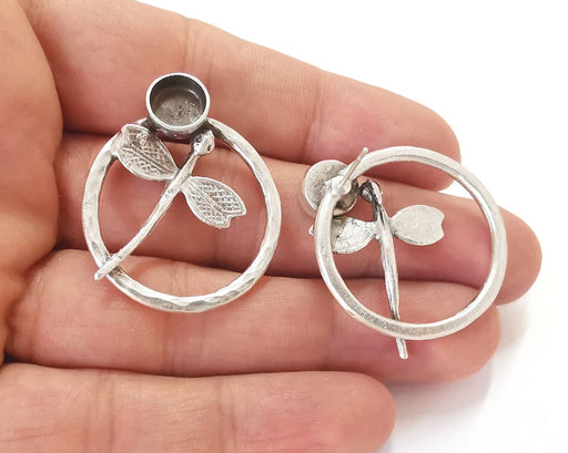 View full detailsHoop Rod Stick Round Silver Earring Set Base Wire Antique Silver Plated Brass Earring Base (12mm cabochon bezel) (43x31mm) G34199