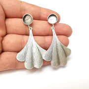 Ginkgo Earring Stud Base, Leaf Earring Blank, Ear Settings Resin Bezel, Cabochon Mounting, Antique Silver Plated Brass (10mm blanks) G35637