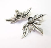 Leaf Silver Earring Set Base Wire Antique Silver Plated Brass Earring Base ( 10mm blanks ) G27050