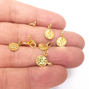 Hammered disc charms are made of gold plated brass metal Size : 13x8 mm.