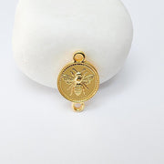 This bee connector charm features a detailed embossed bee design on a round medallion, symbolizing hard work, harmony, and prosperity. With its double-sided detail and two loops, it is perfect for creating bracelets, layered necklaces, anklets, or nature-inspired jewelry pieces.