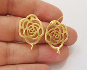 2 Rose flower earring stud base Gold plated brass earring 1 pair (29x20mm) G25669