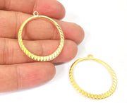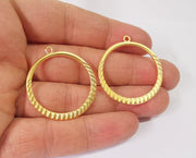 2 Ribbed circle charms Double sided Hoop circle Gold plated charms (37x34 mm) G24520