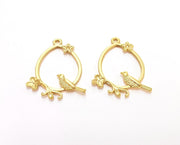 2 Bird Flower Charms Gold Plated Charms (39x30mm) G21324