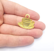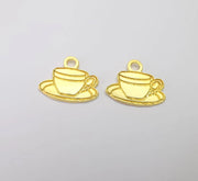 2 Coffee Cup Charms Gold Plated Charms (30x25mm) G26706