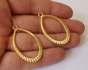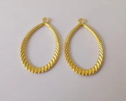 2 Ribbed oval charms Double sided Gold plated charms (42x25 mm) G24191