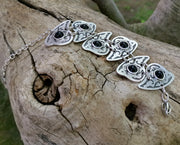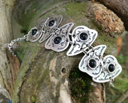 Bracelet With Black Beads Antique Silver Plated Metal Adjustable SR629