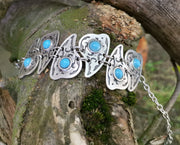 Bracelet With Blue Beads Antique Silver Plated Metal Adjustable SR626