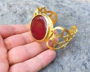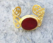 Bracelet with Garnet Red Stone Gold Plated Brass Adjustable SR490