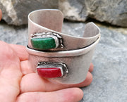 Bracelet with Green And Red Stones Antique Silver Plated Brass Adjustable SR250