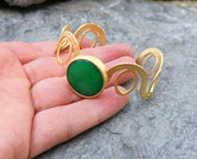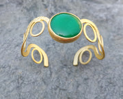 Bracelet with Green Stone Gold Plated Brass Adjustable SR226
