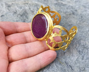Bracelet with Purple Stone Gold Plated Brass Adjustable SR510
