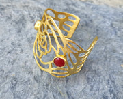 Bracelet with Red Stones Gold Plated Brass Adjustable SR499