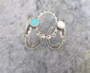 Bracelet with Turquoise and White Stone Antique Silver Plated Brass Adjustable SR286