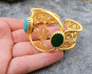 Bracelet with Turquoise and Green Stones Gold Plated Brass Adjustable SR228
