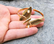Butterfly Bracelet with Real Pearls Gold Plated Brass Adjustable SR218