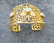 Butterfly Bracelet with White Stones Gold Plated Brass Adjustable SR232