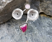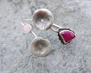 Flower Bracelet With Fuchsia and Light Pink Stones Antique Silver Plated Brass Adjustable SR239