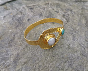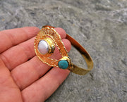 Bracelet with Turquoise Gemstone and Real Pearl Gold Plated Brass Adjustable SR61
