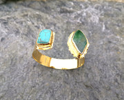 Bracelet with Turquoise and Green Agate Gemstones Gold Plated Brass Adjustable SR64