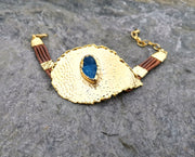 Eye Bracelet with Blue Agate Gemstone Gold Plated Brass Adjustable SR75