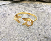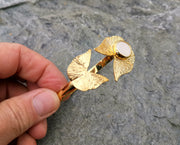 Flower Bracelet with Real Pearl Gold Plated Brass Adjustable SR62