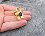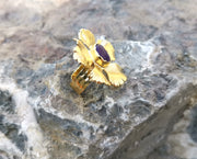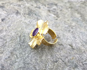 Flower Ring with Purple Stone Gold Plated Brass Adjustable SR89