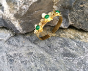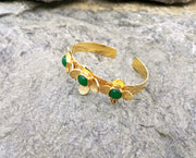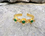 Flowers Bracelet with Green Gemstones Gold Plated Brass Adjustable SR65