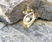 Flowers Bracelet with Real Pearl Gold Plated Brass Adjustable SR63