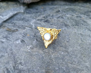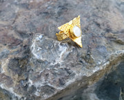 Gold Plated Brass Ring with Real Pearl Adjustable SR32