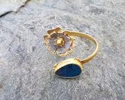 Gold Plated Brass Bracelet with Blue Agate Gemstone Adjustable SR1