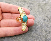 Ring with Turquoise Gemstone Gold Plated Brass Adjustable SR98