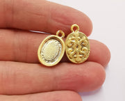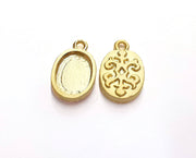 2 Patterned Oval Charms Blank Bezel Resin Bezel Mosaic Mountings Gold Plated Pendant Cabochon Tray (22x14mm)( 15x11 mm Inner Size) G20950