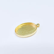 24k gold color oval bezel pendant blank designed for cabochon, resin, glass, stone, or miniature artwork settings. With its deep bezel structure, this jewelry base is ideal for creating secure and professional-looking necklaces, statement pendants, and custom handmade jewelry designs.