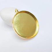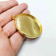 Large Oval Bezel Pendant Blank, Deep Setting Jewelry Base, 24k Gold Color, 50mm Bezel, G37727