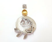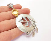 Hammered Leaf Pendant Blank Resin Bezel Mosaic Mountings Antique Silver and Gold Plated Brass (92x46mm)(10mm Bezel Size) G26311
