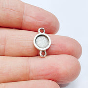 2 Round Bezel Connector Pendant, Minimal Cabochon Frame, Antique Silver Plated, 8mm, G37765