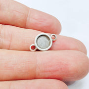 This round bezel connector features a clean circular setting designed to hold 8mm round cabochons, stones, resin, polymer clay, or flat-backed inserts. Its simple and balanced form makes it an ideal component for handmade necklaces, bracelets, earrings, and delicate connector jewelry designs.