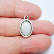 Oval frame blank settings antique silver plated pendant are made of nickel free and lead free zinc alloy metal. Inner diameter : 14x10 mm, Size : 20x12 mm.