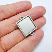 This square bezel connector features a clean 20mm recessed setting with two integrated loops, making it ideal for bracelet links, necklace connectors, and layered jewelry designs. Its minimalist square form provides a modern foundation for resin art, photos, cabochons, pressed botanicals, or mixed-media creations.