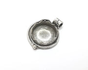 Flower silver pendant blank bezel base setting necklace blank mountings Antique silver plated brass (17 mm blank) G26263